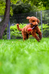 • auf einen separaten, umzäunten und toll ausgestatteten Welpenspielplatz,